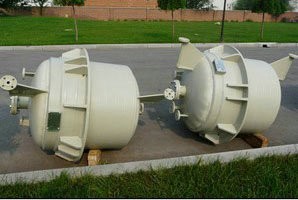 二種:Oblation纏繞工藝方法,利用玻璃鋼材料,具有一定的柔順性質(zhì),在生產(chǎn)車間里先纏繞成PPH聚丙烯異型設(shè)備殼體以后,在橫向上施加以一定的壓力裝上卡車運輸?shù)绞褂霉さ兀缓笤倩謴偷皆瓉淼膱A柱外形,然后再裝配成所設(shè)計的特大型玻璃鋼PPH聚丙烯異型設(shè)備。